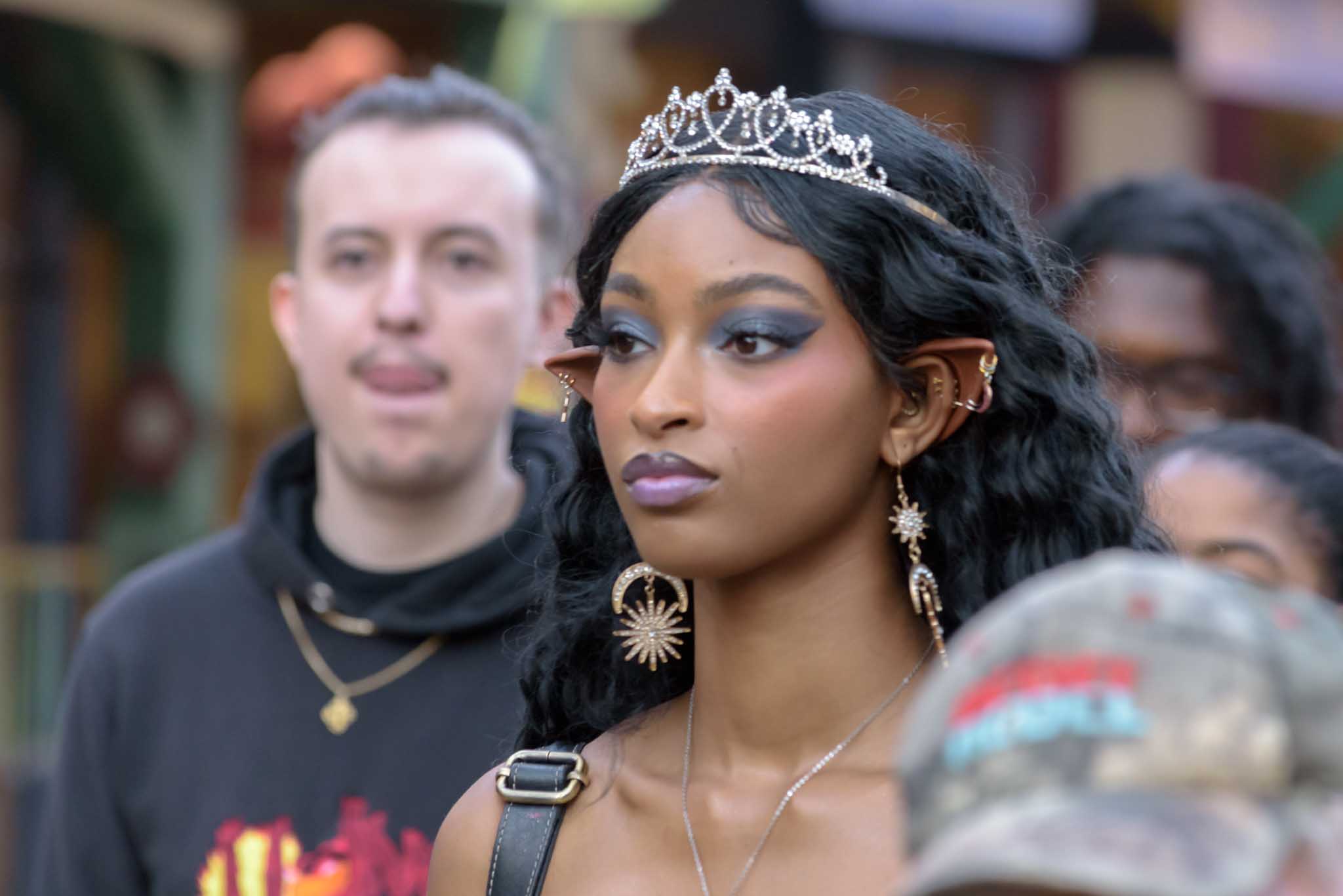 I followed a familiar pattern of choosing a location then waiting for interesting faces in the crowd. After a while I would find a different spot and try again. I ended up with some really good pictures, but the most interesting shots happened in the late afternoon with the lowering sun providing some lovely backlight images.